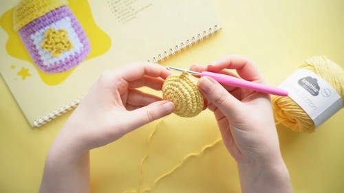 - Cut off the yellow yarn; tie and tuck ends inside.