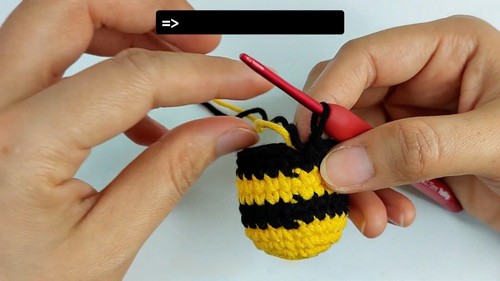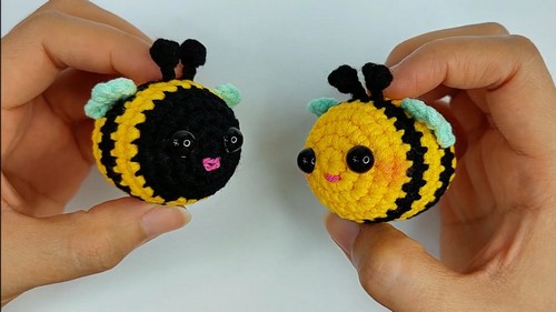 Upon completion, the adorable bee not only serves as a cheerful accessory but also as a testament to newfound skills and creativity. Lighting is soft and inviting, ideally set by a nearby lamp that provides gentle illumination, perfect for focusing on each stitch without straining the eyes. The mood is peaceful and satisfying, offering a sense of accomplishment with every loop and tie.