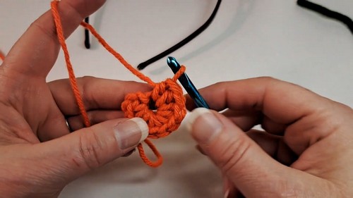 - Make 10 half-double crochets (HDC) into the magic ring.