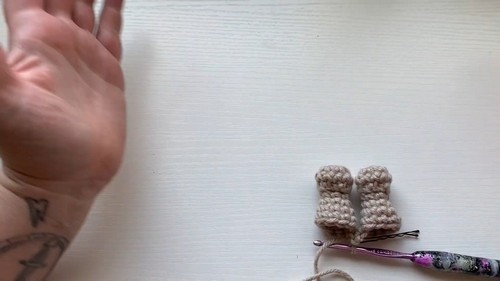 - Rounds 7-8: 1 sc in each stitch around (10 sc). Finish one leg and sever the yarn. For the second leg, do not cut the yarn after round 8.