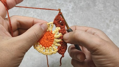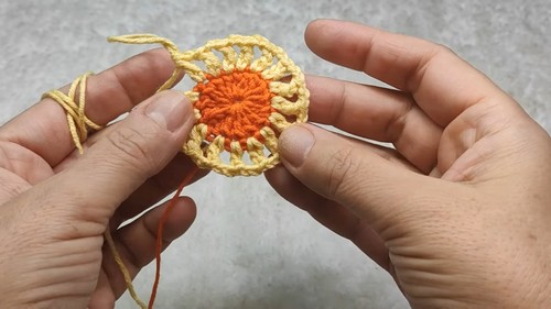 - Continue making triple crochets into the ring until you have a total of 16 triple crochets.