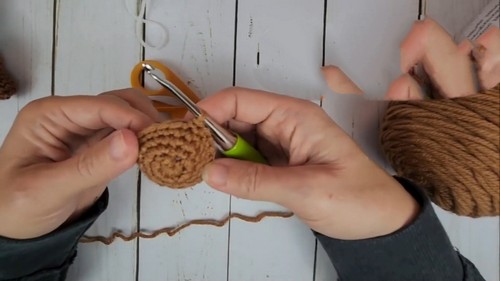 Round three, single crochet increase in the first stitch, then one single crochet in the next; repeat this pattern around to have 18 single crochets (18 sc).