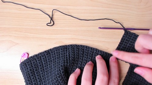 - Continue working single crochet rows along the bottom edge without decreasing, creating straight sides.