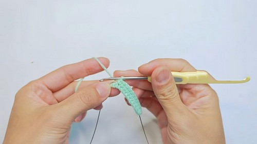 - Ch 1 more, single crochet (sc) in the second chain from the hook, then 11 sc along the chain.