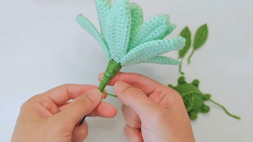 - Chain 1 to secure, then wrap yarn around craft wire ends to hide.