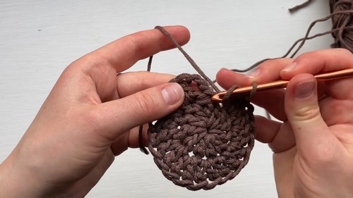 - This pattern is for a 30 cm diameter placemat. For a larger placemat, add another round before the edge.