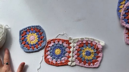- Use the join-as-you-go method: start in a corner, join corners with a chain 1, and slip stitch into adjoining squares to connect as you work around.