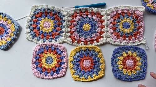 - Continue adding rounds until each square reaches the desired size (usually 5 rounds).