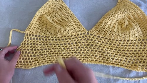 - For a personalized fit, you may need to adjust the number of chains at the beginning, the number of rows for the cups, and the lengths of both the shoulder and back straps.