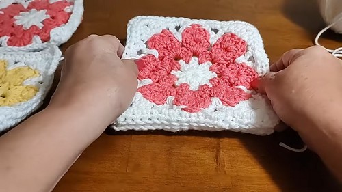 - Repeat the joining process for all your squares, both vertically and horizontally, to build the blanket.